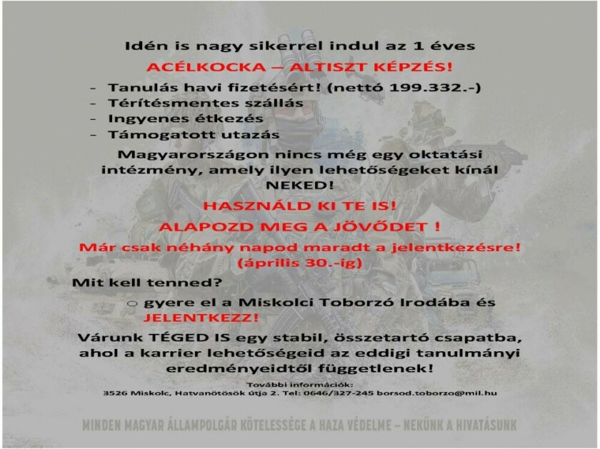 Akármilyen hülye vagy, egy éven át kapsz havi nettó 200ezret, teljes ellátást, és végül egy őrmesteri rendfokozattal hivatásos katona leszel.
