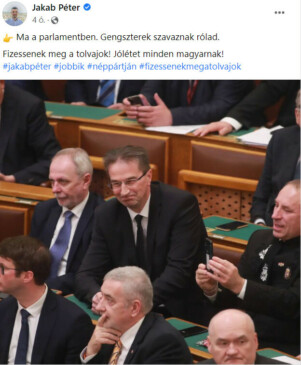 „Azért ne felejtse el hordani a fideszes fülbevalóját! valamint “hálával” gondoljon a 4 gazember fideszes képviselő szavazatára.