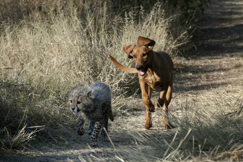 Gepárdkölyköt kergető kutya NamíbiábanFotó: PHILIPPE-ALEXANDRE CHEVALLIER/Biosphoto via AFP