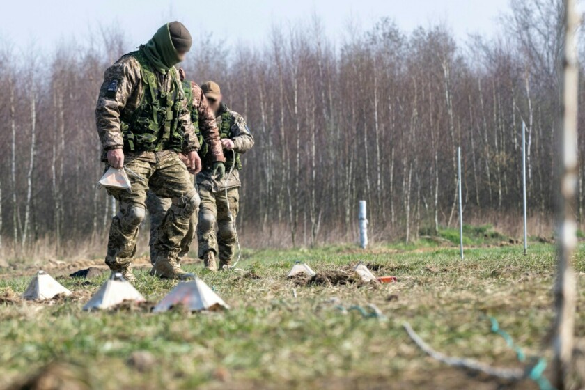 Az ukrán vezérkar közlése szerint az úgynevezett „árkászok” az aknákkal kapcsolatos ismereteket és az aknabiztonságot sajátíttatják el az ukrán erők tagjaival.