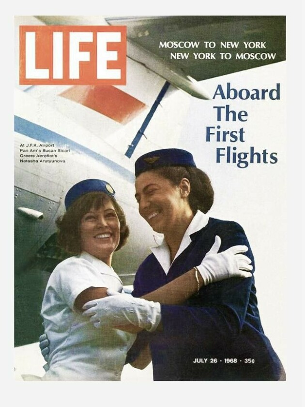 This was an historic event during the Cold War. The July 28th, 1968 cover of LIFE Magazine featured Pan American World Airways Stewardess Susan Sicari greeting Aeroflot flight attendant Natasha Arutyunova at JFK Airport.