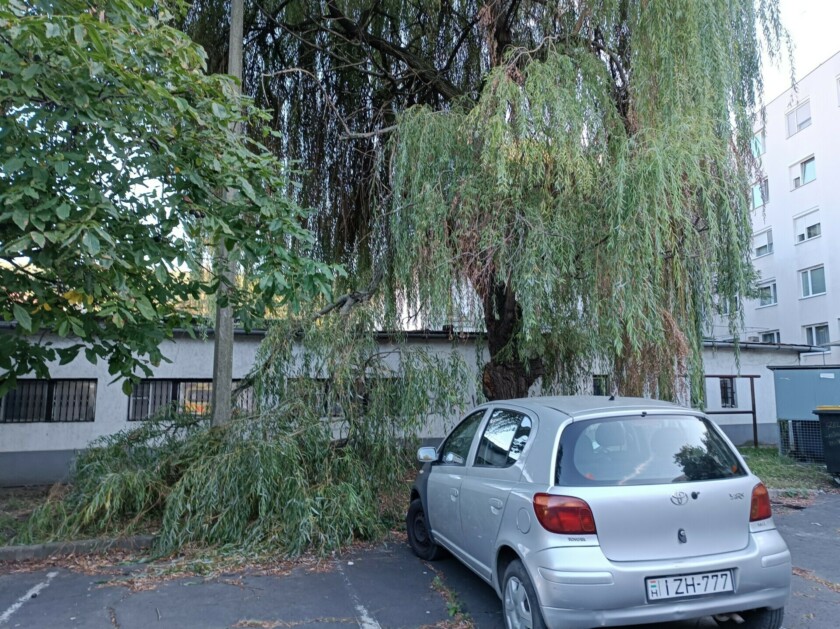 Miskolc. Szélvihartól szomorúfűzről lehasadt, csüngő nagy ág szakszerű eltávolításának kérése. Küldjél