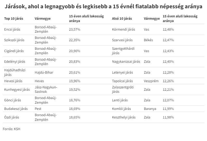 Fiatalok. 24 százalék az arány Encsi járásban, de ezen kívül még öt borsodi járás került a top 10-be