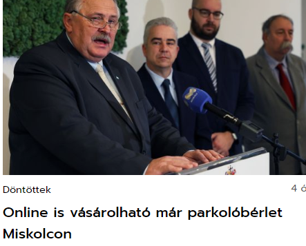 Csütörtökön a miskolci önkormányzat közgyűlésének ülésén a Demokratikus Koalíció két képviselője, Mokrai Mihály és Szilágyi Szabolcs, valamint a Fidesz és a KDNP képviselői több előterjesztést nem szavaztak meg, így azt sem, hogy online lehessen vásárolni parkolóbérletet a városban. Veres Pál polgármester a ma reggeli sajtótájékoztatón megjegyezte, úgy érzi, az említett pártok koalícióra léptek egymással. „Azért dolgozunk, hogy megkönnyítsük a városlakók életét, és mivel ma már szinte minden működik az online térben, úgy gondoltuk, a továbbiakban nem kellene kígyózó sorokban állni a parkolóbérletek megvásárlásakor sem” – mondta Veres Pál. boon.hu