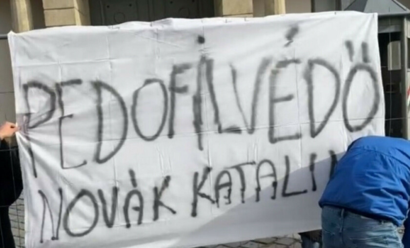 Elbontotta a Momentum a Karmelita előtt felállított kordonokat, és átvitték a Sándor-palota elé. A párt aktivistái a köztársasági elnök hivatala előtt felállított kordonokra „Pedofilvédő Novák Katalin” feliratot tettek ki – írja a HVG.