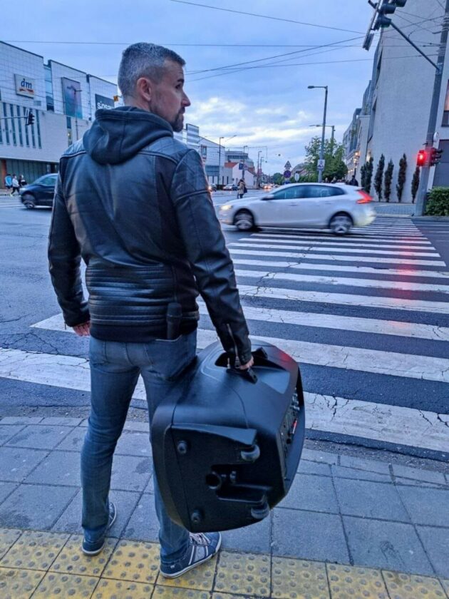 Jakab. Mikrofon a hátsó zsebben