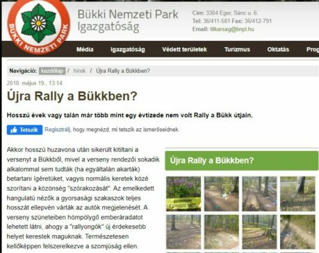 24-26. között tervezett II. “HELL” – Diósgyőr Rally elnevezésű rally mindegyik útvonala a Bükki Nemzeti Park Igazgatóság (BNPI) működési területén (a BNPI működési területe: gyakorlatilag Heves és Nógrád