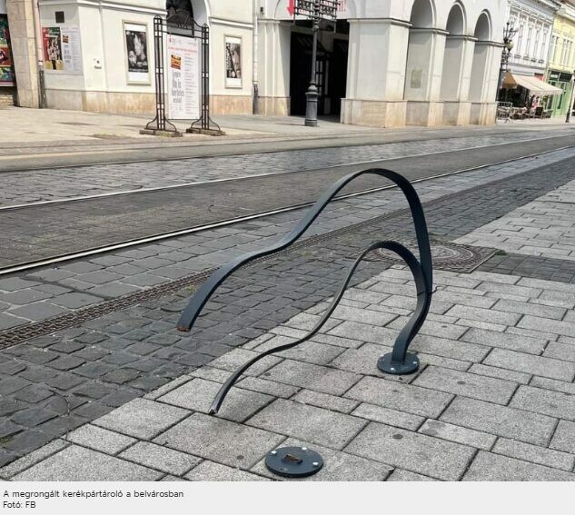 A főutcai kerékpártárolók elhelyezésénél törekedtünk a sétálóutcai szakasz egyenletes ellátására, de figyelembe kellett venni a kiülős teraszokat, a közműaknákat és a közlekedési viszonyokat.” Hozzátette: ez utóbbiak jelentősen befolyásolták az egyenletes kioszthatóságot, de ahol lehetett, ott az egyenletességre törekedtünk az elosztásnál. A mostani pórul járt kerékpártárolóról azt írta a városgazda, hogy „a sérült elemet eltávolítja, majd amikor megérkezik az új tároló, akkor felszereli.