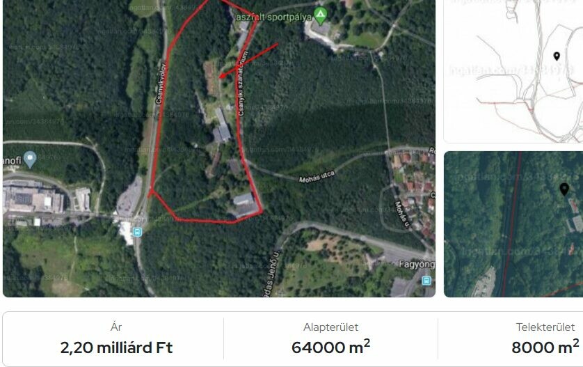 Miskolc III. kerület 01223 helyrajzi szám alatt, az ún. Csanyik völgyben 64 ezer m2 nagyságú, természetvédelmi terület szomszédságában található, 2 utcáról megközelíthető fejlesztési ingatlan eladó. Az ingatlan ősfás környezetben található, a területén 8 ezer m2 ingatlan felépítmény található, amelyek teljes felújítást igényelnek.