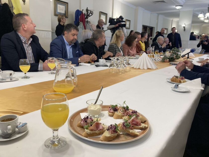 Miskolc. Nézegessél a Városháza pénzén reggeliző újságírókat