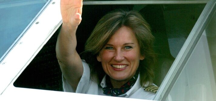 Budapest, 2005. április 4. Czigány Ildikó a Malév első női pilótája immáron kapitányként vezette haza Varsóból a Malév 841-es számú Fokker 70-es repülőgépét. Fotó: MTI / Földi Imre