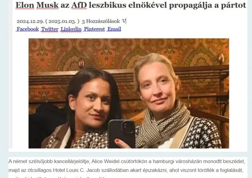 Egyértelműen hamis szélsőjobboldali pártnak beállítani az AfD-t, hiszen a párt vezetője, Alice Weidel azonos nemű partnerével, egy Srí Lanka-i származású nővel él együtt. Ez tényleg Hitlerre hasonlítana? Ugyan már, kérem!
