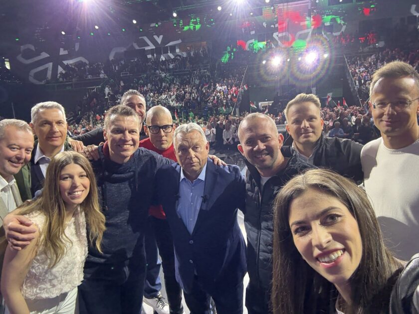 3. A RENDEZÉS. Szándékosan nem statikus hatást akartak kelteni a rendezők, pedig lényegében azt láttuk, hogy egymás után szólalnak fel politikusok és véleményvezérek. A felszólalók viszont nem egy helyben álltak, hanem olykor a közönség sorai között sétálgattak, Szijjártó Péter például az egyik sorból felállva sétált be pontos koreográfia alapján (az elején volt is bizonytalanság, mikor induljon), illetve az egyik influenszer ráakadt a közönségben egy hódmezővásárhelyi “harcosra”, aki nem meglepő módon Lázár János volt. Mindez a rendezés annak szólt, hogy jobb Tiktok-videókat és az Instagram story-kat tudjanak gyártani. Ezeket nyilván folyton látni is fogjuk a következő napokban.