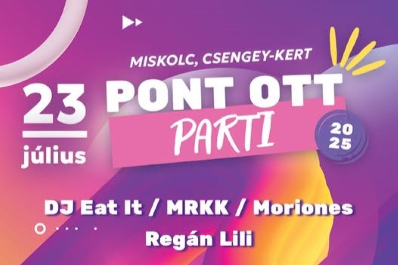 A felvételi ponthatárok kihirdetése alkalmából Miskolcon Pont Ott Partit rendeznek a Csengey-kertben, ahol a továbbtanulás előtt álló fiatalokat színes programokkal, hasznos információkkal és nyereményekkel várják. A cél, hogy a feszült várakozás közösségi élménnyé váljon, miközben a diákok az egyetemi élettel is közelebbről megismerkedhetnek.