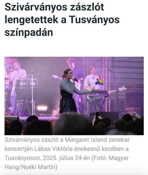 1. Nem ez az egyetlen NER-ellenes kikacsintás a fesztiválon: a Punnany előtt fellépő Margaret Island egyik utolsó koncertjén az énekes, Lábas Viki egy kis szivárványos zászlót lengetett a színpadon.