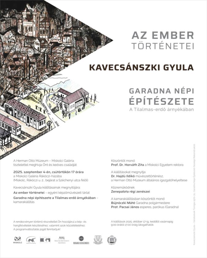 A Herman Ottó Múzeum – Miskolci Galéria tisztelettel meghívja Önt és kedves családját 2025. szeptember 4-én, csütörtökön 17 órára a Miskolci Galéria Rákóczi-házába Kavecsánszki Gyula kiállításainak megnyitójára: