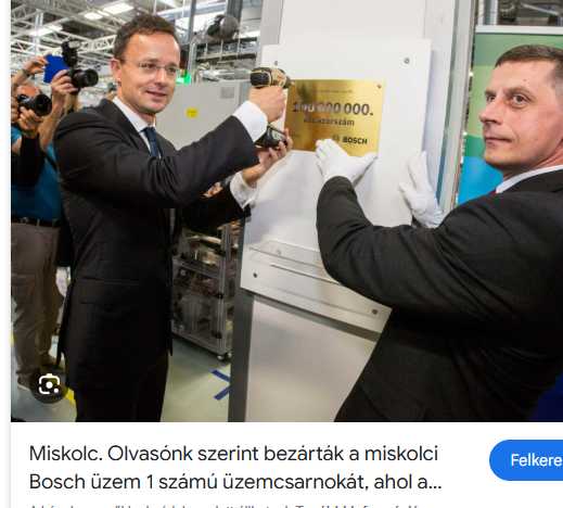 Német telephelyeiről Miskolcra telepíti a gyártást a Bosch
