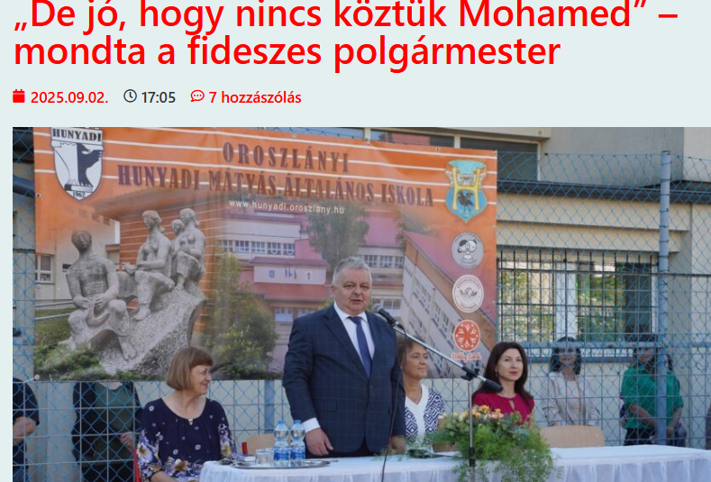 „De jó, hogy nincs köztük Mohamed” – mondta a fideszes polgármester