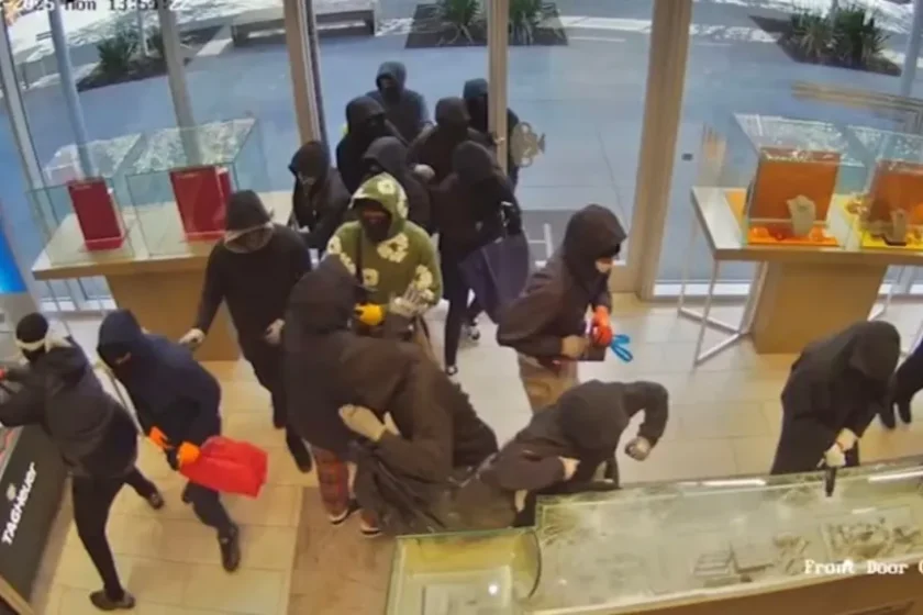 Az elkövetők becsődültek az üzletbe, szétverték és kirámolták a vitrineket, majd menekülőre is fogták. Az ABC News szerint nem csak feszítővasak, hanem lőfegyver is volt néhányuknál – ez látható az alábbi videóban is. Egy pisztoly el is sült, amikor az automatikusan bezáródott bejárati ajtó üvegét szétlőtték, hogy azon át menekülhessenek.