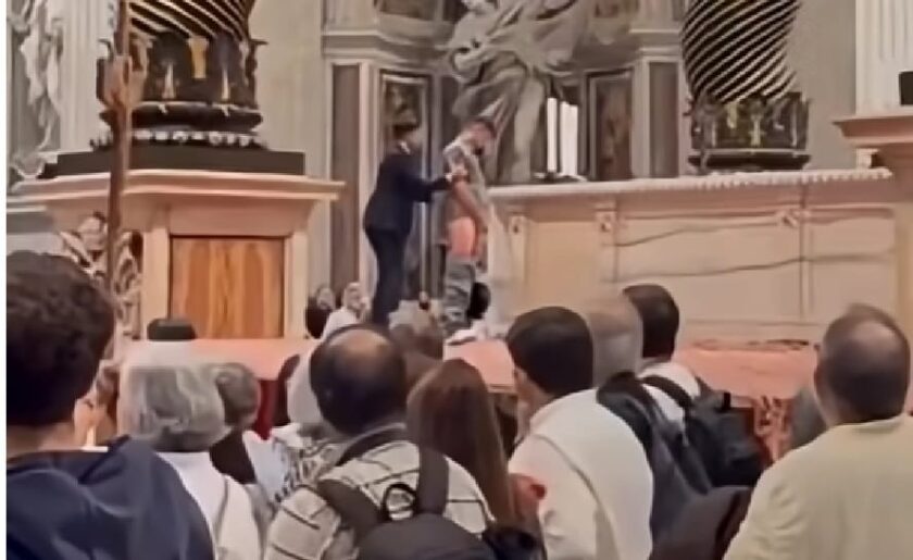 Pénteken reggel botrányos jelenet történt a római Szent Péter székesegyházban, egy fiatal férfi felmászott a gyónási oltárra, és a turistákkal teli templomban letolt nadrággal vizelni kezdett.