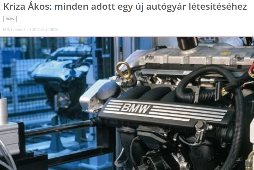 Miskolccal közvetlenül még nem vette fel a kapcsolatot a bajor autógyár – jelezte Kriza Ákos, hozzáfűzve: egy ilyen cég Magyarországra jövetele nemzetstratégiai kérdés. A BMW az eladott kocsik számát a tavalyi 1,67 millióról 2016-ra 2 millióra kívánja emelni, e cél elérését szolgálja a gyártókapacitás bővítése. A beruházás vagy beruházások helyszínéről idén ősszel dönthetnek.